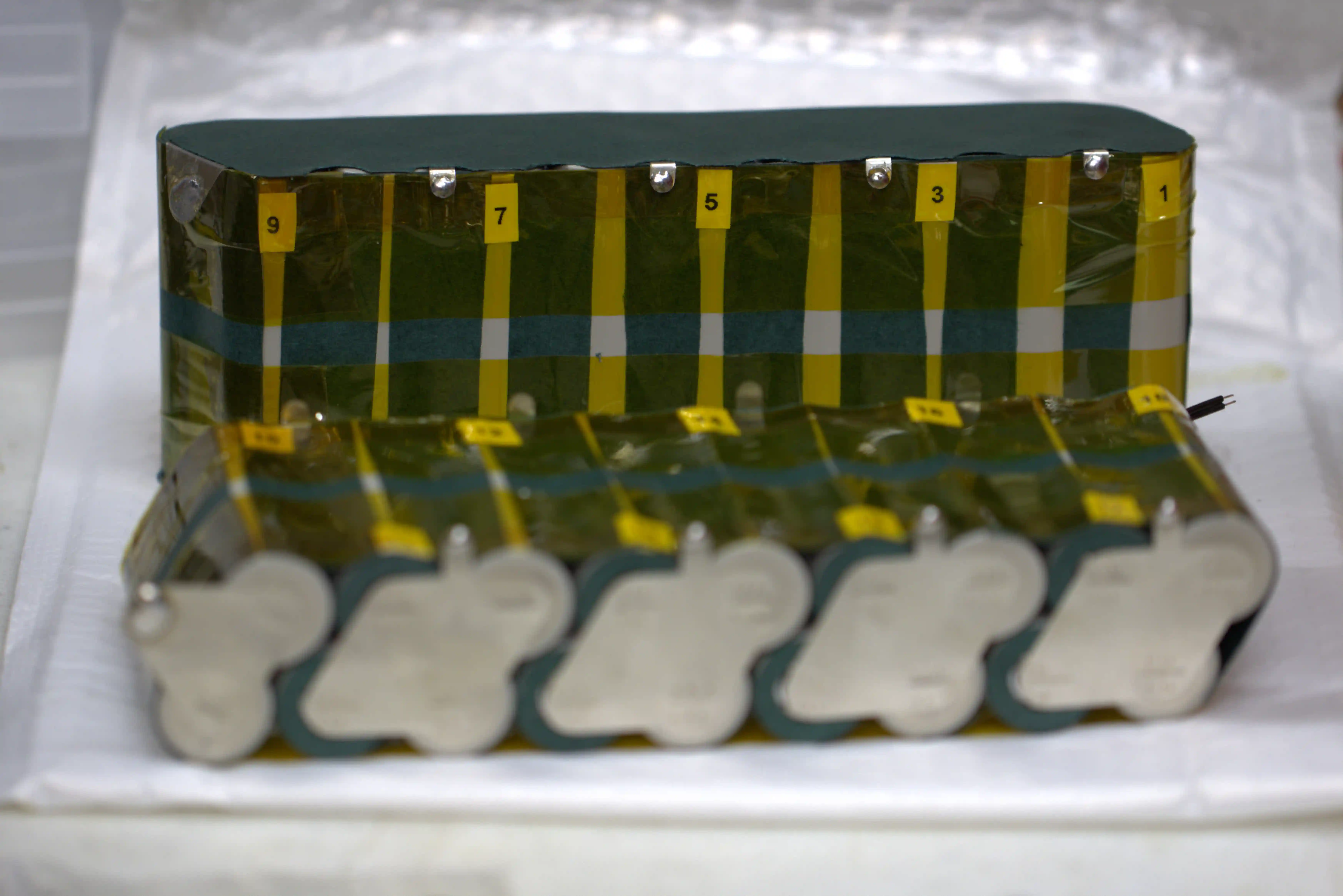Since I was still new to battery building I was not aware of the importance of fish paper. I placed the cells tight to each other, using only the welds to bind them until I taped them all together. While this seemed to work, it was difficult to assemble and not properly designed for the vigorous vibrations of onewheeling. One of my theories of the cause of v2's second bad cell and ultimate falure was the lack of fish paper. Several cells showed signs of corrosion, and a few had parts where the nickel strips had worn through the battery heat shrink making contact with the metal of the cell.